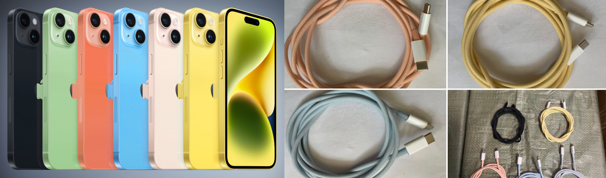 - USB-C 케이블과 무선 충전의 혁신: iPhone 15 및 iPhone 15 Plus 모델은 기존의 흰색 USB-C to Lightning 케이블 대신에 각각의 색상에 맞춘 편조된 USB-C to USB-C 케이블을 포함하여 제공될 전망입니다. 이러한 변경으로 인해 사용자들은 디바이스 색상과 일치하는 케이블을 사용할 수 있게 될 것으로 기대됩니다. 새로운 USB-C 케이블은 1.5m 길이로 제공되며 내구성이 향상되었습니다.